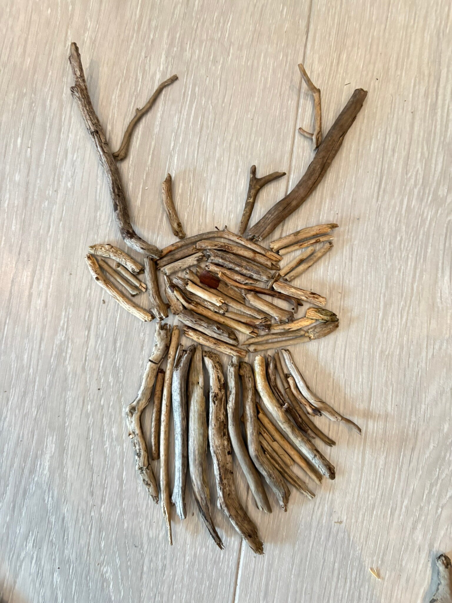 Inspirasjonen min kommer ofte fra omgivelsene rundt meg. Her er et forsøk på å lage en figur av pinner funnet på skogbunnen, inspirert av idé på Pinterest.